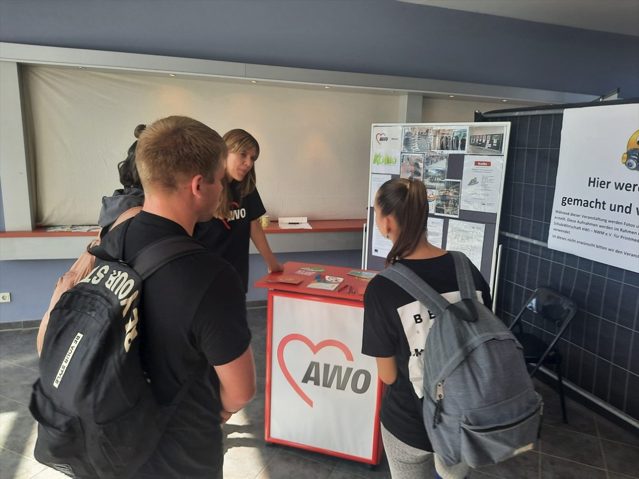 So war auch der Arbeiterwohlfahrt Kreisverband Wismar e.V. an beiden Tagen mit einem Stand vertreten und kam mit vielen Schülern, einigen Eltern und auch anderen Firmen ins Gespräch. Es wurden Kontakte geknüpft, Termine vergeben und das Kompetenz- und Motivationscoaching vorgestellt.