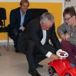 Großen Spaß hatten die Anwesenden anschließend dabei, Herrn Beyer und Erzieherin, Jasmin Jahns beim fachmännischen Zusammenbau des neuen Bobby-Cars zuzusehen. Das schicke rote Gefährt und ein Hüpfpferd hatten der Bürgermeister und Pressesprecher, Marco Trunk, als Geschenk im Gepäck. Wir sagen vielen Dank und freuen uns sehr darüber, dass der Bürgermeister sich extra die Zeit für diesen Besuch genommen hat.