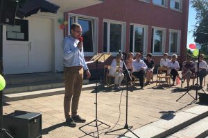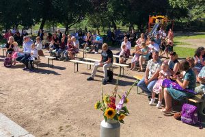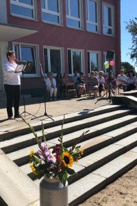 Herzlich willkommen, liebe Erstklässler, hieß es am Samstag bei bestem Wetter. Wegen der Auflagen zum Gesundheitsschutz hätte die Einschulungsfeier bei schlechtem Wetter ausfallen müssen, insofern waren alle sehr froh und sehr dankbar, dass die Kinder diesen besonderen Tag in ihrem Leben genießen konnten. Das Programm gestaltete in diesem Jahr das Schulteam zum ersten Mal selbst und stand seinen Schülern und Schülerinnen im Tanzen, Singen und Gedichtaufsagen in nichts nach.