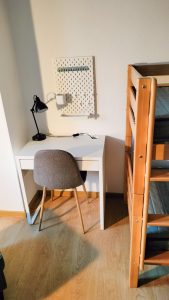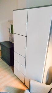 Bei der Planung der Inneneinrichtung der Bewohnerinnenzimmer wurde darauf geachtet, dass ausreichend Stauraum zur Verfügung stehen wird und die Größe der Räume optimal genutzt werden kann. Ebenso waren Stabilität und Funktionalität wichtig.