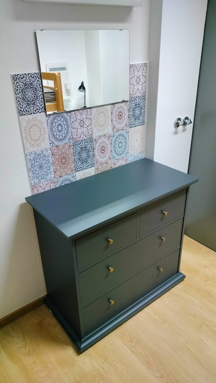Bei der Planung der Inneneinrichtung der Bewohnerinnenzimmer wurde darauf geachtet, dass ausreichend Stauraum zur Verfügung stehen wird und die Größe der Räume optimal genutzt werden kann. Ebenso waren Stabilität und Funktionalität wichtig.