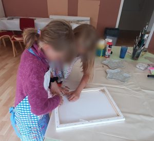 In den ersten Ferienwochen entstanden kreative Ideen, die gemeinsam umgesetzt wurden und nun den Flur im Bürgerhaus verschönern.