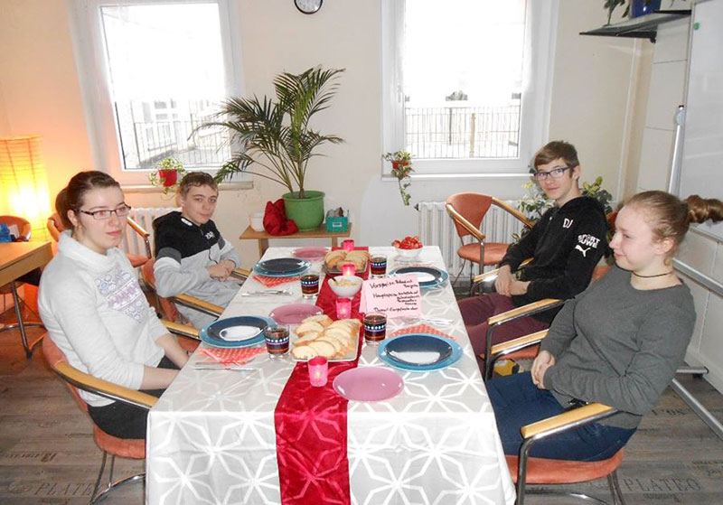 Dieser Assessmentauftrag gefällt den teilnehmenden Schülerinnen und Schülern der IGS Johann Wolfgang v. Goethe, der Bertolt-Brecht-Schule und der Ostseeschule besonders. Sie dürfen selbständig planen und entscheiden und anschließend in einem kleinen Team gemeinsam kochen und selbstverständlich auch speisen. Dazu gehört auch das Einkaufen und die kreative Tischdekoration. Eine gemütliche Atmosphäre rundet das Ganze ab. Deshalb wurde der Raum umgestaltet, denn das Auge isst bekanntlich mit. Den Jugendlichen macht es Spaß eigenverantwortlich zu agieren und Erfahrungen in einem Bereich zu sammeln, den wir Erwachsenen ihnen oftmals nicht zutrauen. „Man kann einen Menschen nichts lehren. Man kann ihm nur helfen, es in sich selbst zu entdecken“ (Gallileo Galilei)
