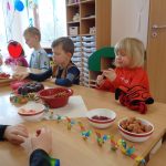Ein weiterer Höhepunkt war das Faschingsfest, welches trotz einzuhaltender Hygienemaßnahmen ein großer Spaß war. Die Kinder begannen mit einem gemeinsamen Frühstück und gestalteten den Tag unter anderem mit Tanzen, Stuhltanz und Topfschlagen. Zwischendurch wurde natürlich auch noch genascht. 😉