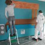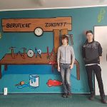 Drei Schüler der 9. Klasse der „IGS Johann Wolfgang von Goethe“ beteiligten sich mit großem Interesse und Engagement in den Ferien an einem Graffiti-Workshop, der über das Projekt „Opti“ organisiert wurde. Am ersten Tag wurde unter Anleitung von Christian Pursch eifrig skizziert und geplant. An den beiden folgenden Tagen setzten Aron und Florian ihre kreativen Ideen mit Begeisterung um und erwarben einige neue Fähigkeiten dazu. Am Ende entstand eine phantasievolle Wandgestaltung. Der Raum soll zukünftig als Werkstatt für das Potenzial-Assessment-Verfahren genutzt werden und dient somit der beruflichen Orientierung.