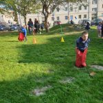 Viele Stationen haben die Kinder entdecken können. Zwischen Sackhüpfen und Schubkarrenrennen war das Highlight natürlich die Hüpfburg. Unser Fest wurde abgerundet mit Pommes und Bratwurst.
